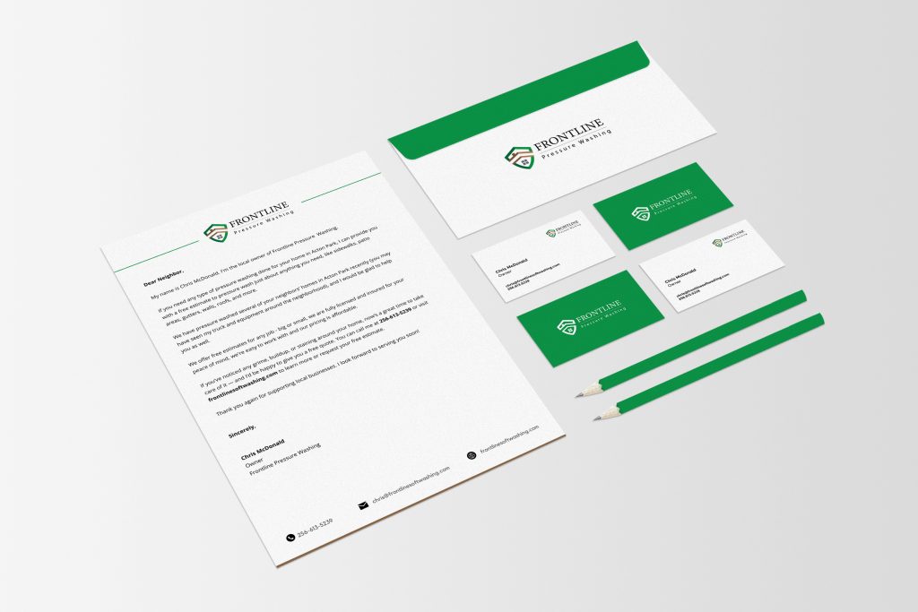 We supported the launch with a targeted direct mail campaign. Our team wrote a customized letter, designed branded letterhead, and mailed it to homes in the neighborhood where Frontline was actively working. This helped build awareness, spark referrals, and reinforce their presence in the community.