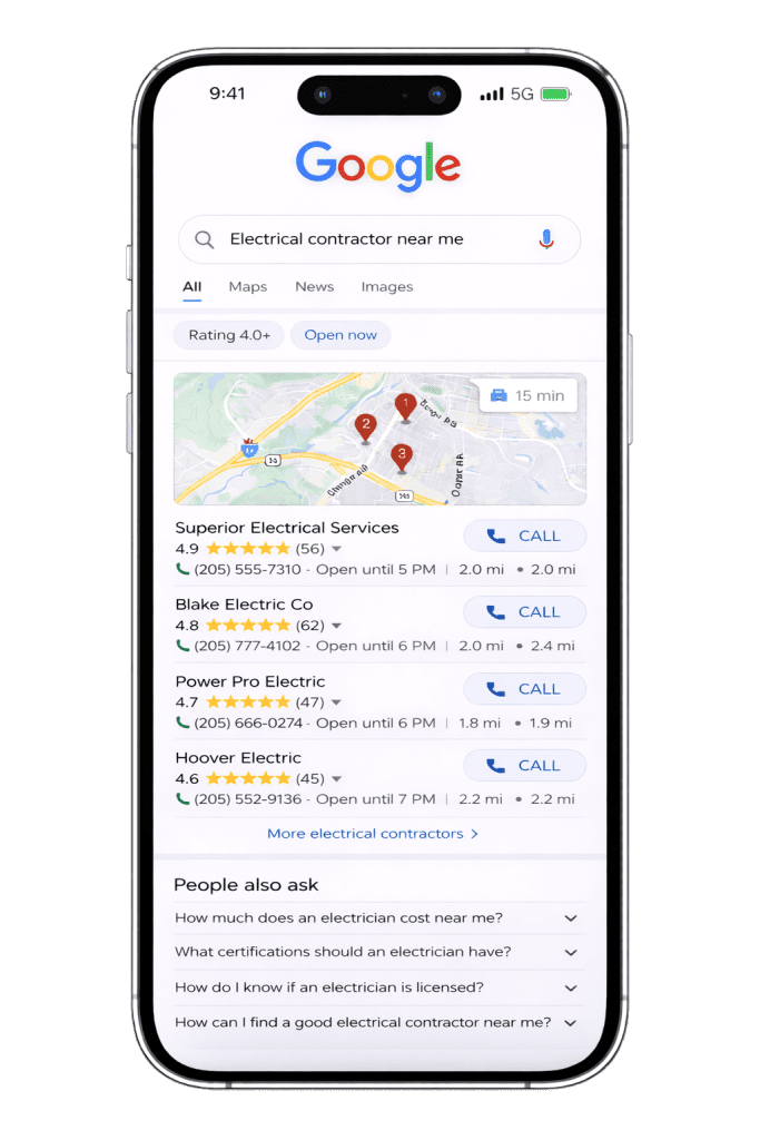 Show up when customers search for your services — in search, maps, and AI-assisted results.