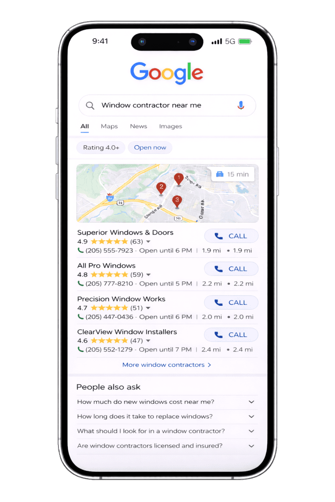 People still use Google — but they also ask AI tools questions like “Who’s the best roofer near me?” or “What’s a trusted landscaping company in Birmingham?” The brands that show up consistently are the ones with clear service pages, strong credibility signals, and content that answers real questions.