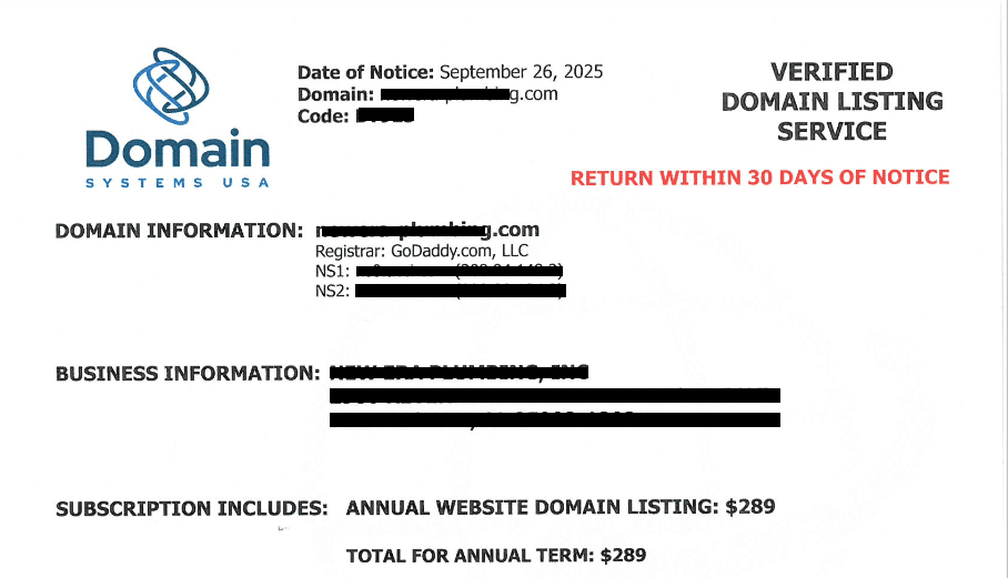 Scam Alert: Fake Invoices from “Domain Systems USA”